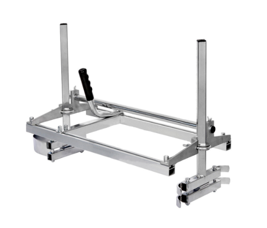 La herramienta se conecta directamente a la barra de la motosierra y gracias a los dos rieles paralelos es posible deslizar la herramienta sobre el tronco y cortar tablas.