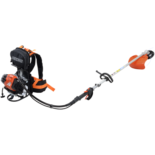 Desbrozadora de mochila ECHO RM 520 ES, manillar flexible, bajo nivel sonoro Low-Tone, antivibración, encendido electrónico CDI, arranque fácil ES-Start.
